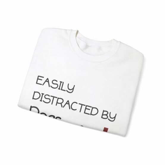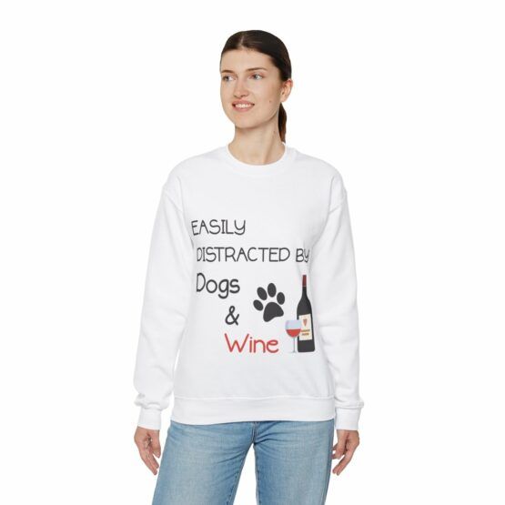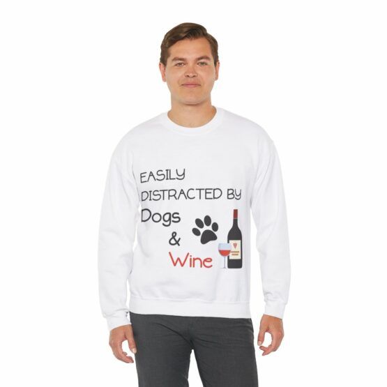 Funny Crewneck Sweatshirt with the quote “Easily distracted by dogs and wine”.
