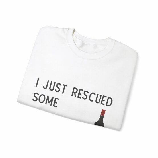 Funny Crewneck Sweatshirt with the quote “I just rescued some wine, it was trapped in a bottle”.